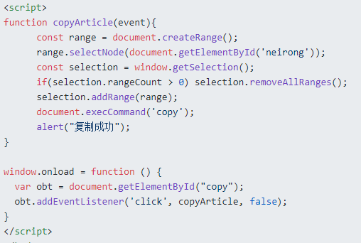 有时候为了方便用户快速复制页面的内容,一般的做法就是添加一个按钮给用户点击一下就复制下来了,这边使用JavaScript原生的方法进行设置剪贴板。